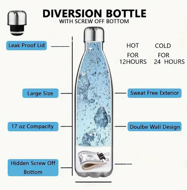 Secret Stash Water Bottle | Hidden Compartment | Black Double-Wall Design