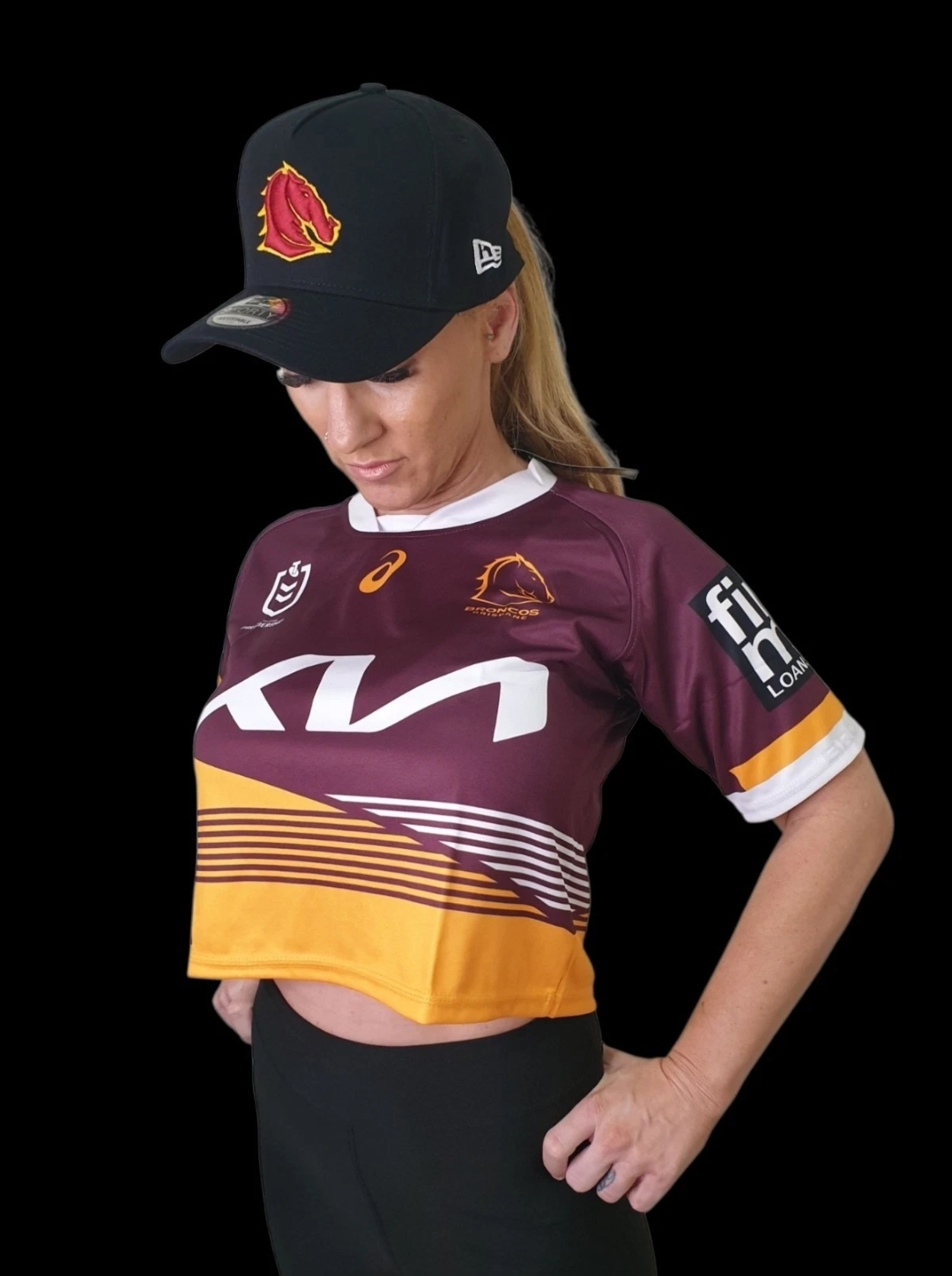 Make a statement with this Custom Brisbane-Inspired Women’s Crop Top Jersey, designed for comfort, performance, and standout streetwear style. A limited one-off piece made to turn heads wherever you go. Model is wearing a size Small.