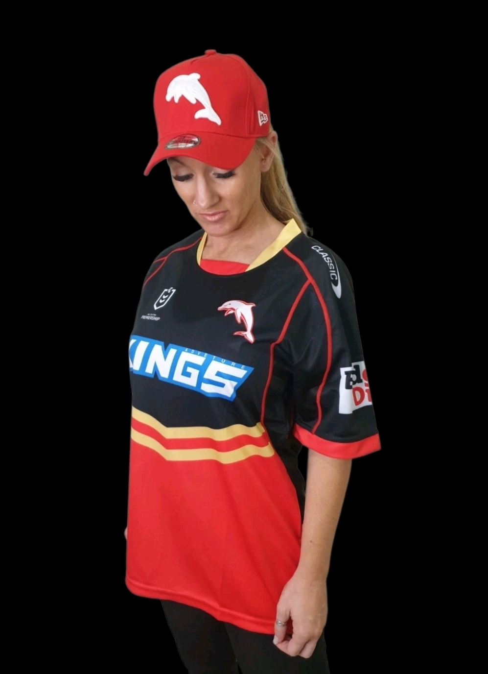 Take your support on the road with the 2024 Redcliffe Dolphins Men’s Away Jersey. Designed in the team’s striking away colours, this jersey is built for comfort, performance, and everyday wear – perfect for fans who want to rep their club wherever they go. Models are wearing a size Small and XL.