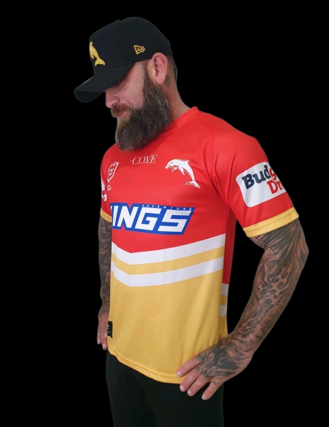 Back your team with the 2024 Redcliffe Dolphins Men’s Home Jersey. Featuring the bold red home colours, this jersey combines comfort, performance, and classic style – perfect for game day, training, or casual wear. Models are wearing a size Small and XL.